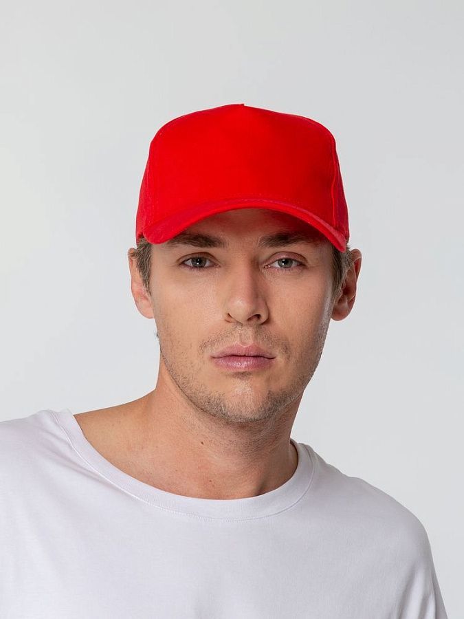 Минималистичная бейсболка с закругленным козырьком и большим местом для нанесения логотипа.
