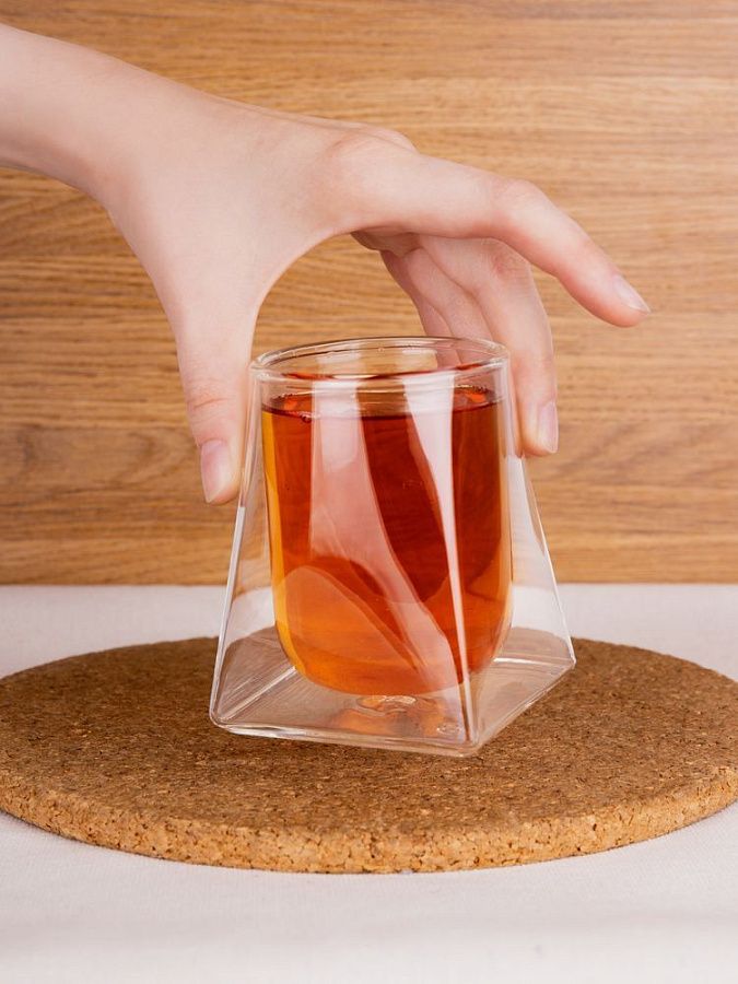 Стакан Quadroni подходит для подачи как горячих, так и холодных напитков. Благодаря двойным стенкам из тонкого боросиликатного стекла стакан практически ничего не весит, отлично сохраняет тепло и не обжигает руки.