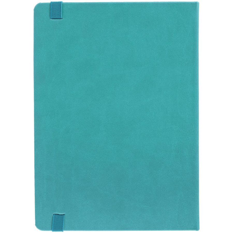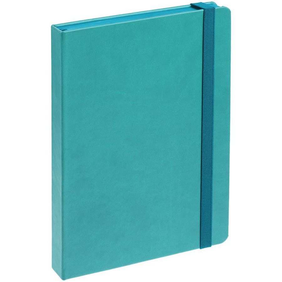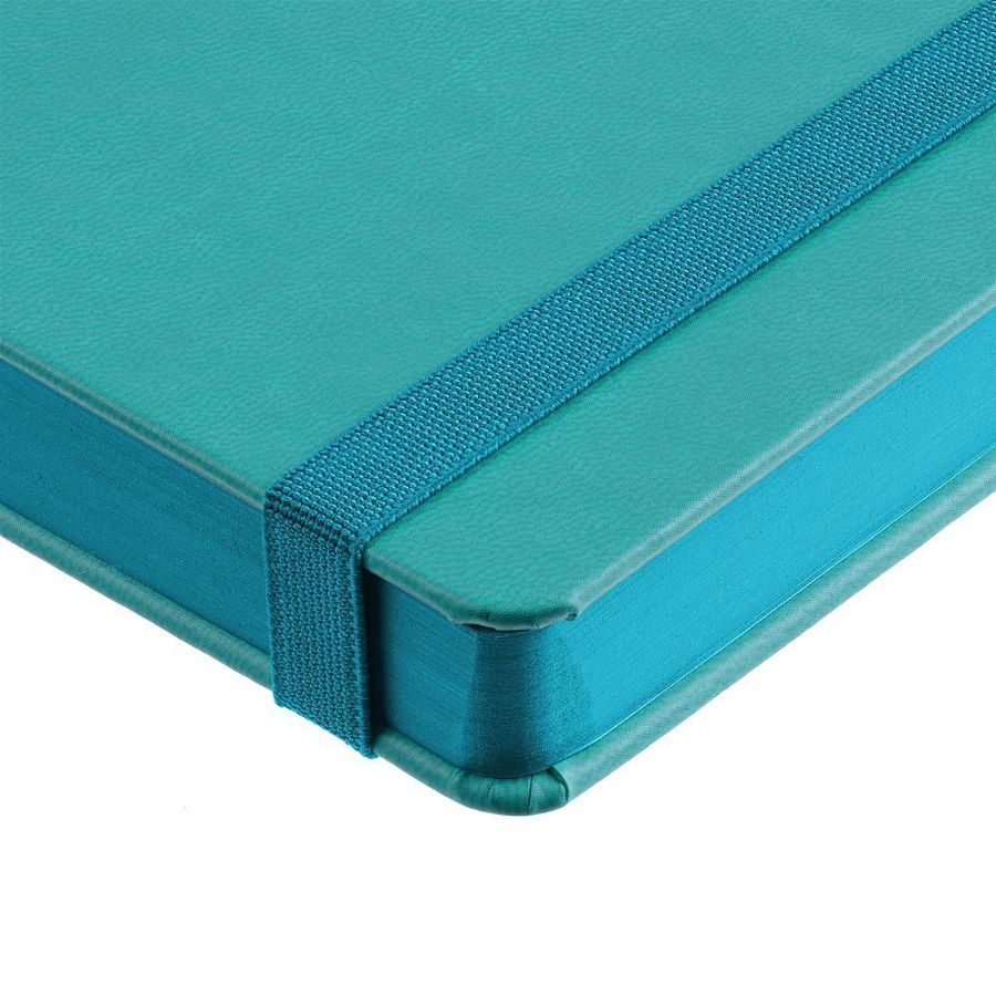 Ежедневник с твердой обложкой, выполнен из материала Latte, цвет морской волны II, обрез бирюзового цвета, дополнен резинкой и ляссе бирюзового цвета.