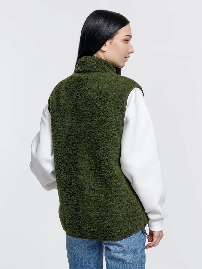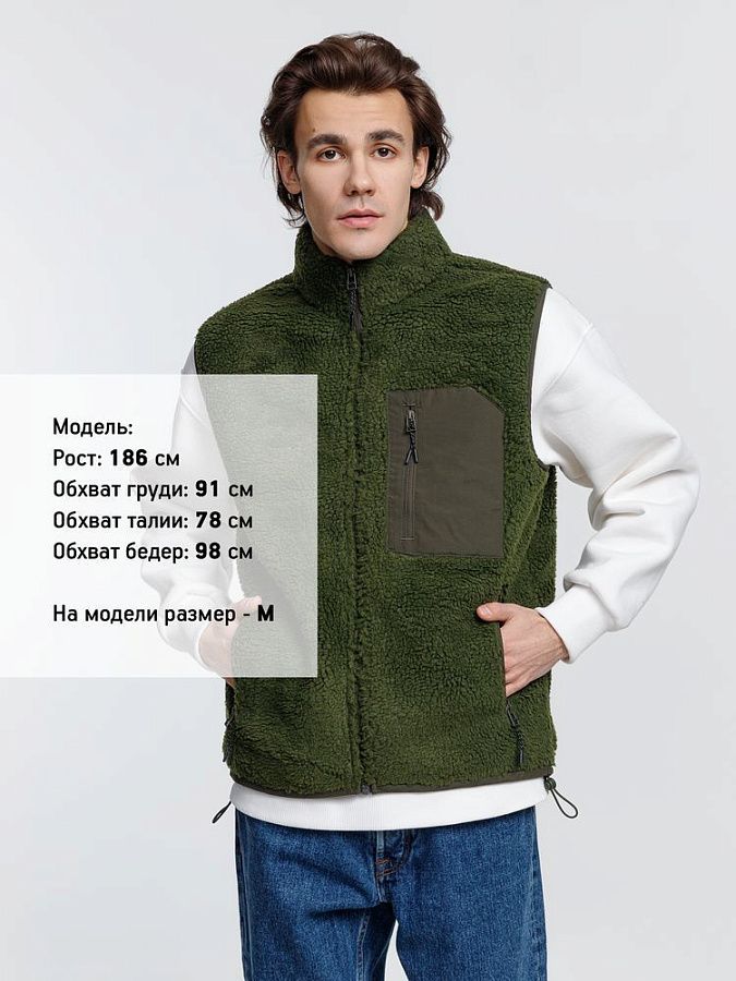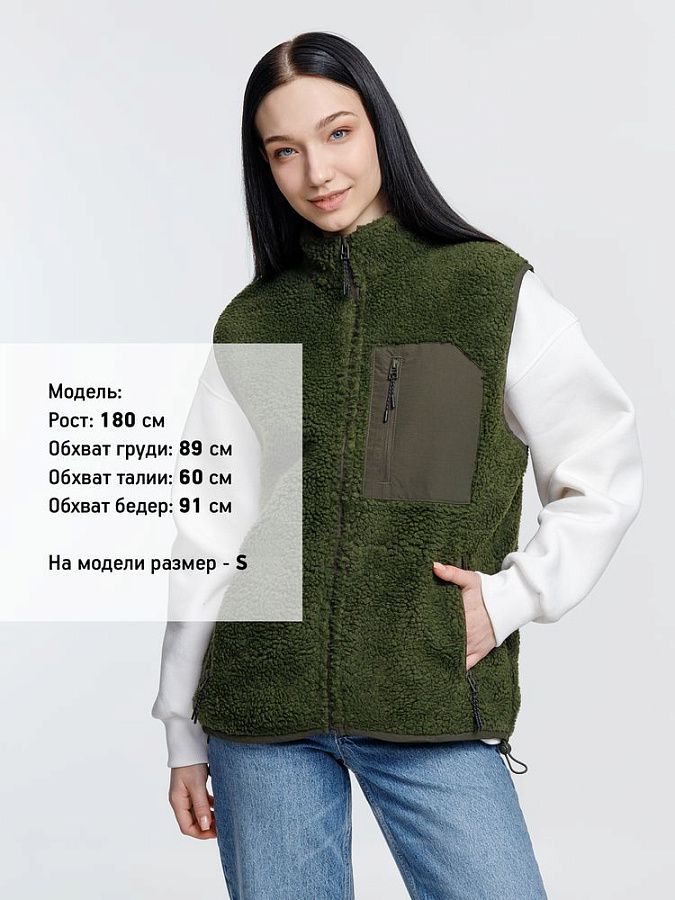 Жилет унисекс из фактурной искусственной шерпы с гладкой отделкой из таслана.