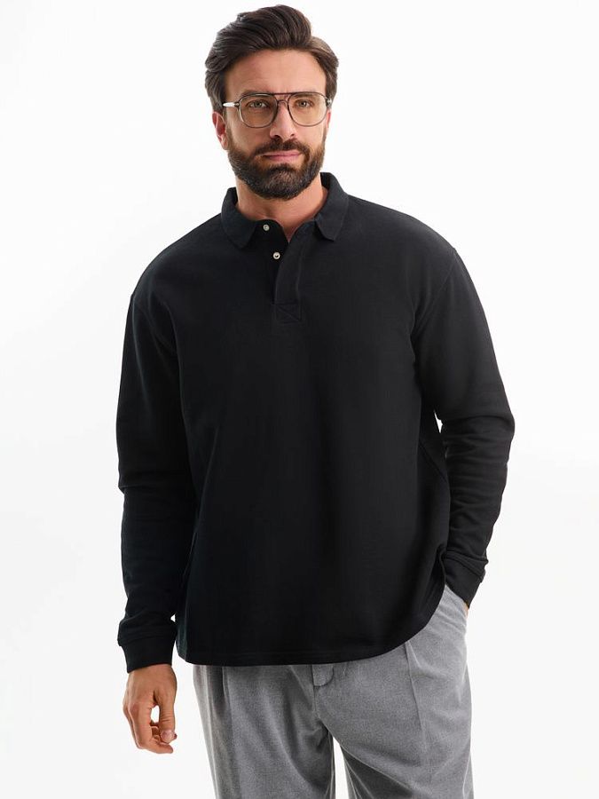 Рубашка поло мужская с длинным рукавом Terrazzo, черная, артикул 19098.30