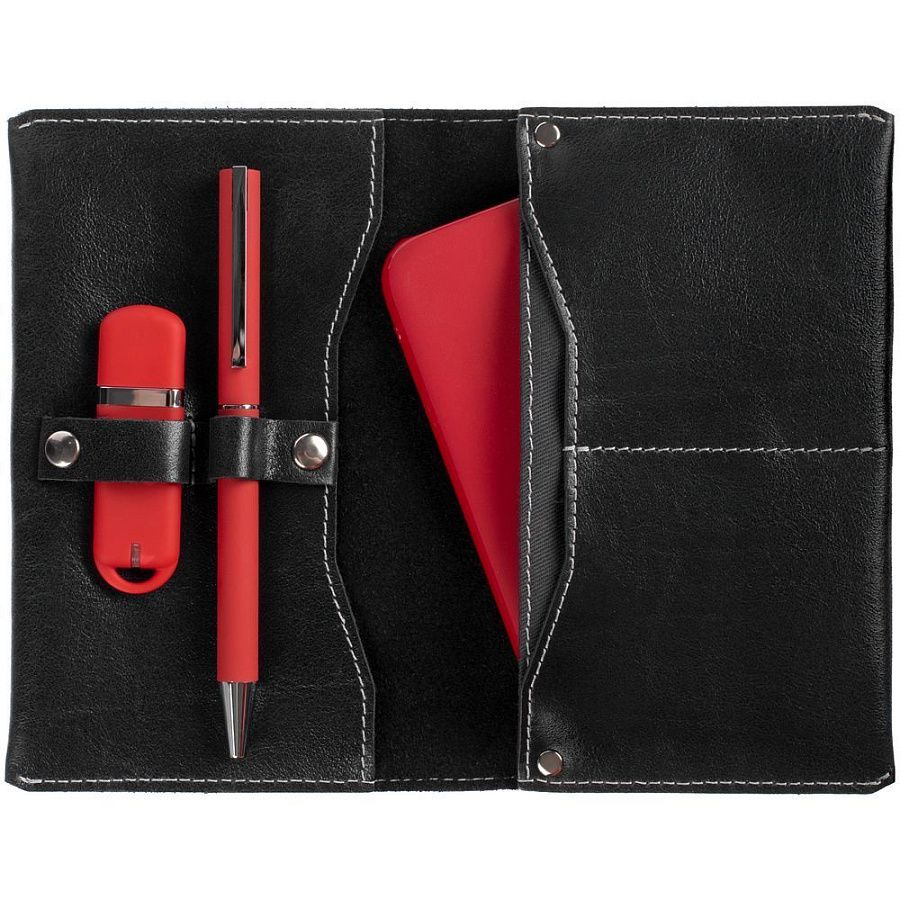 органайзер - натуральная кожа; аккумулятор - пластик, покрытие софт-тач; флешка - пластик, покрытие софт-тач; ручка - металл, покрытие софт-тач