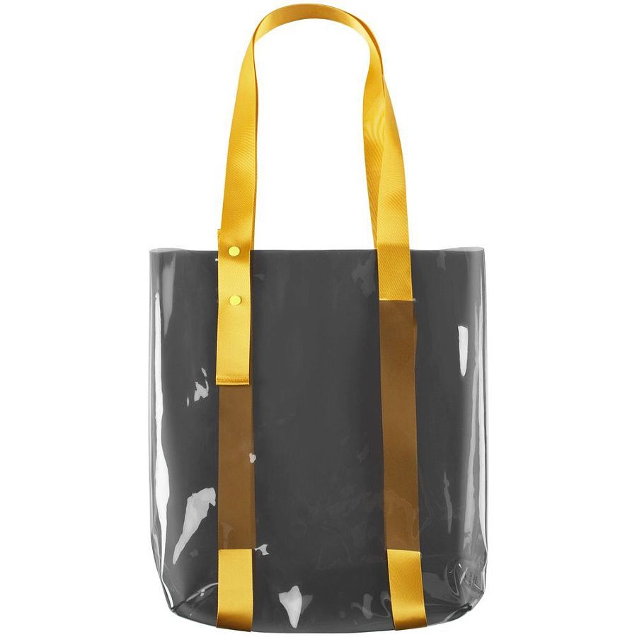 Прозрачные сумки никогда не выйдут из моды. А цветные ручки легко впишутся в брендбук и точно передадут настроение, которое хотелось бы транслировать.