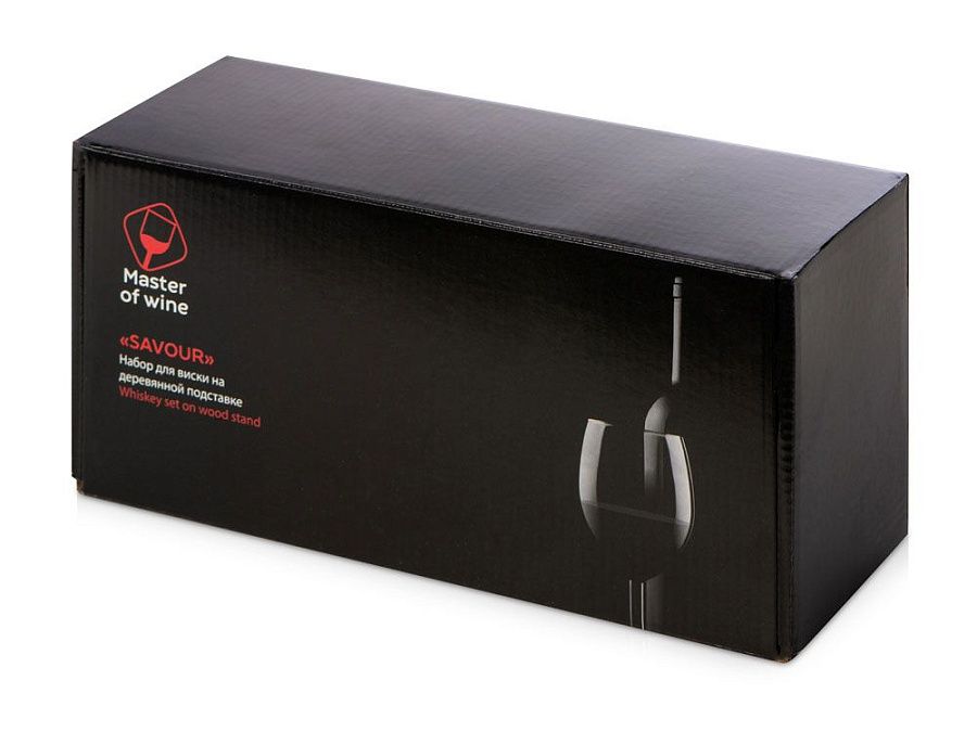 деревянная подставка 28,5 х 12,9 х 2,1 см, бокал 210 мл- 2 шт, шайба для виски d5 х 2,8 см- 2 шт, упаковочная коробка |
