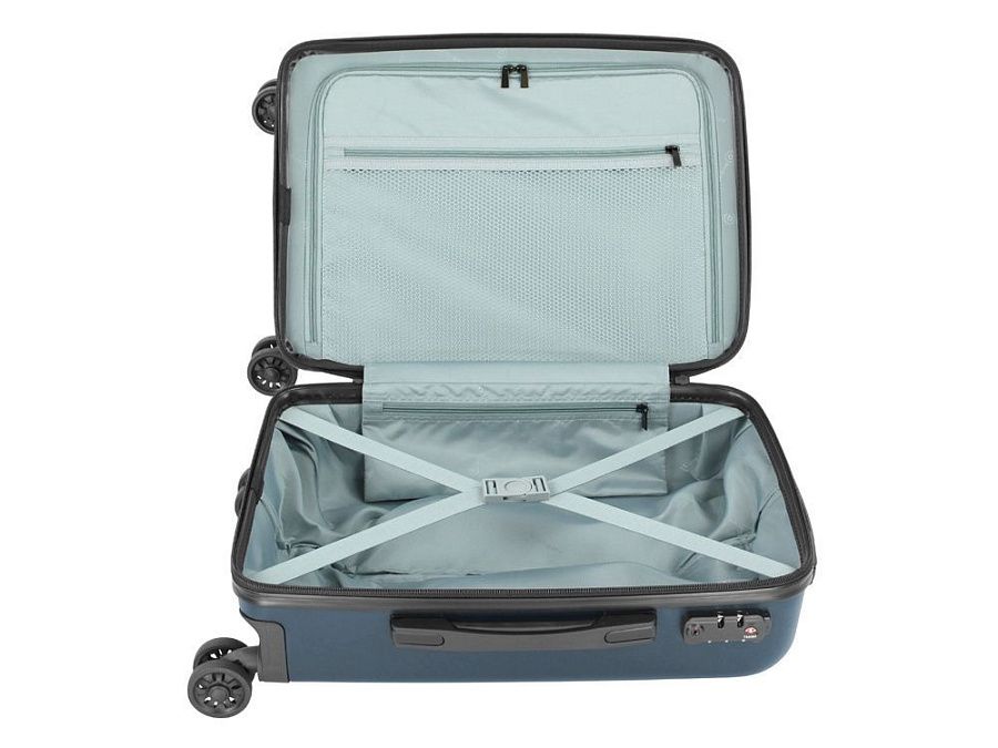 Внешняя организация: телескопическая ручка, кодовый замок TSA, 4 двойных колеса, боковая ручка, ручка на дне
