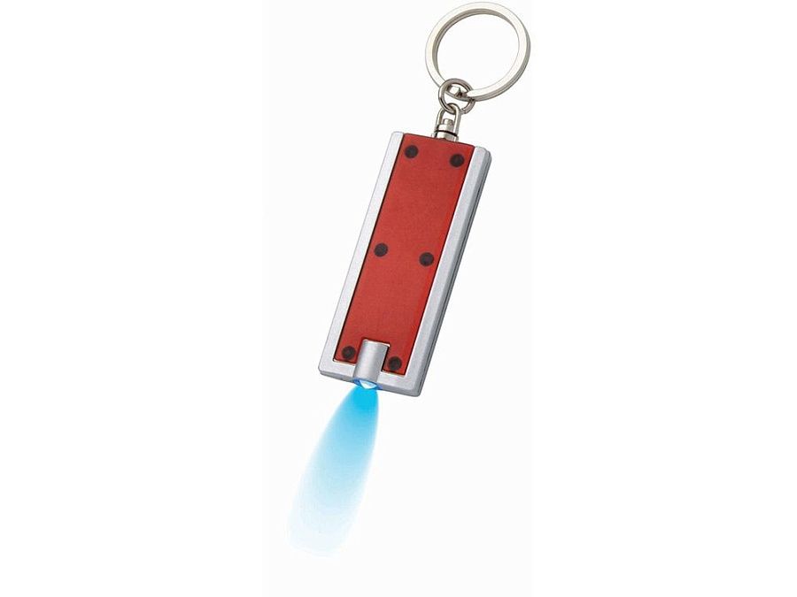 Брелок с ярким светодиодным фонариком с кнопкой. Металлическое кольцо для ключей. Батарейки включены в комплект. АБС-пластик.