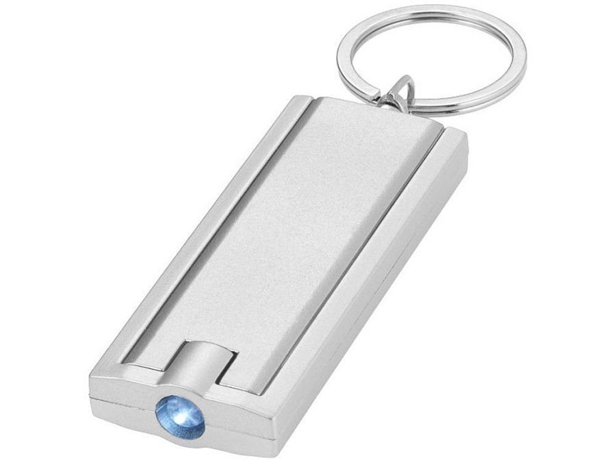 Брелок с ярким светодиодным фонариком с кнопкой. Металлическое кольцо для ключей. Батарейки включены в комплект. АБС-пластик.