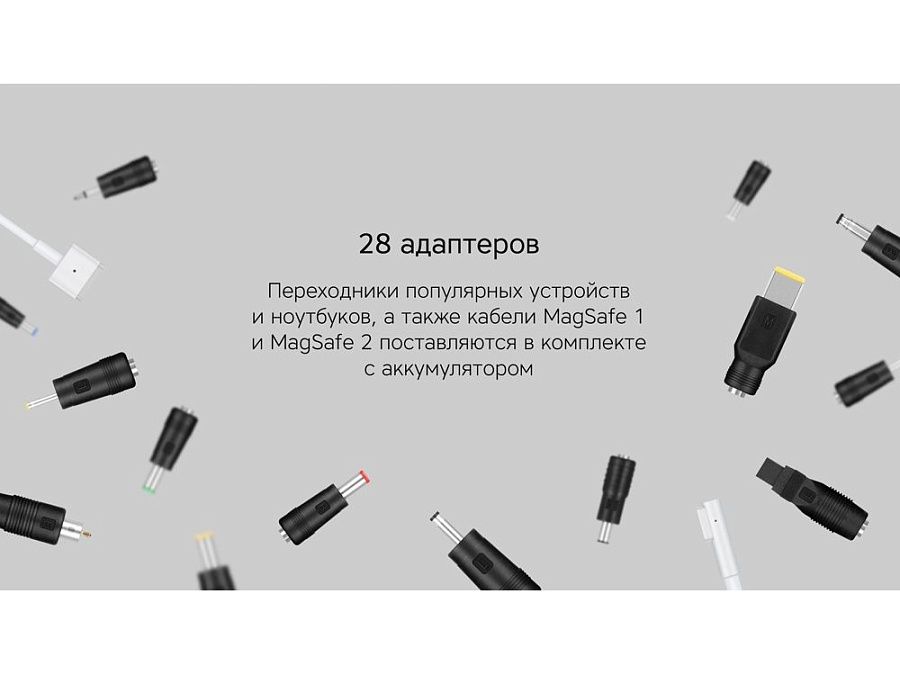 - экстремально высокая емкость 55 000 мАч - заряди все свои устройства! - заряди свой ноутбук: в комплекте 28 адаптеров для различных устройств - чехол в комплекте - удобно заряжать: через DC или Type-C - для современных ноутбуков: поддержка Type-C PD - быстро заряжает: поддержка QC 3.0 - металлический корпус - множественная система защиты для безопасной зарядки устройств - уникальный дизайн