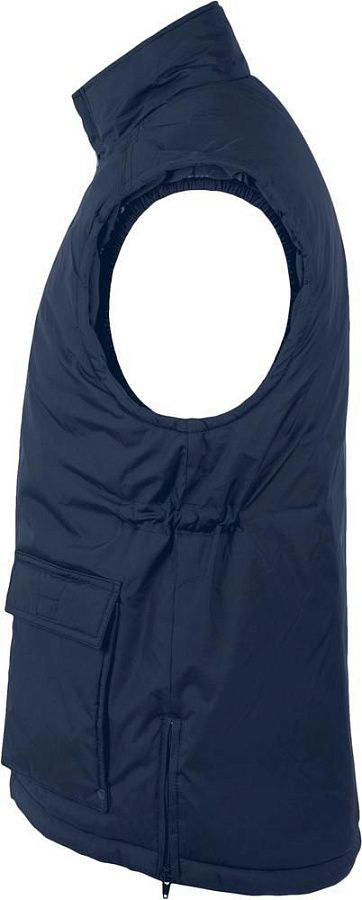 Жилет унисекс из ткани «рипстоп». Высокий воротник на кнопках, на подкладке из флиса. Расстегивается при помощи молнии и кнопок.