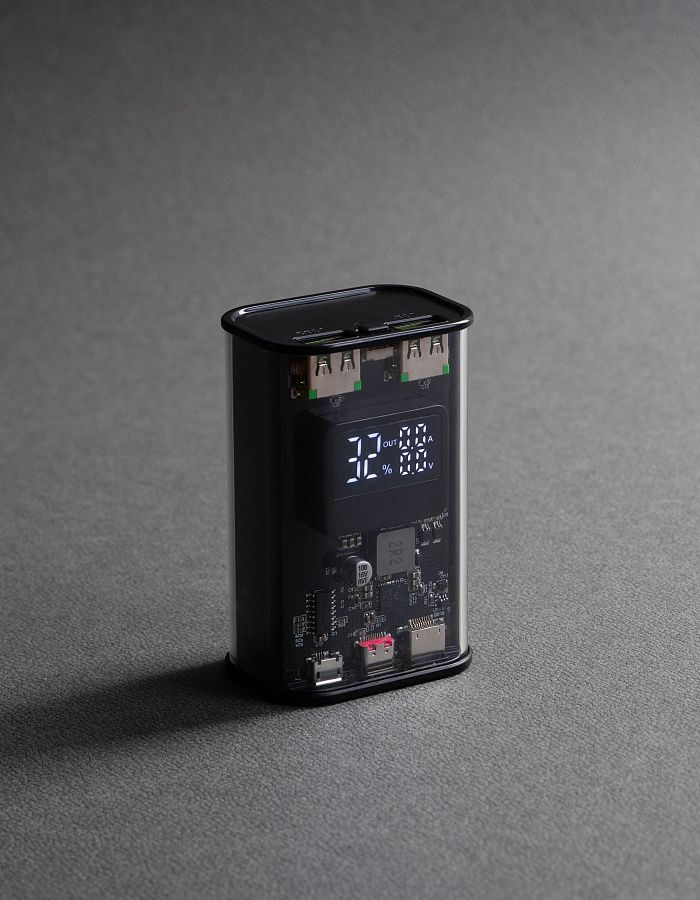 В Inside всё максимально чётко и ясно! Самая быстрая проводная зарядка 22.5W позволяет одновременно заряжать до 3х гаджетов на максимальной скорости. Прозрачный корпус демонстрирует высококачественные комплектующие, дисплей отображает не только точную цифру процентов оставшегося заряда, но и в режиме реального времени показывает с какой силой тока (А) и напряжением (V) пополняется батарея Вашего гаджета.