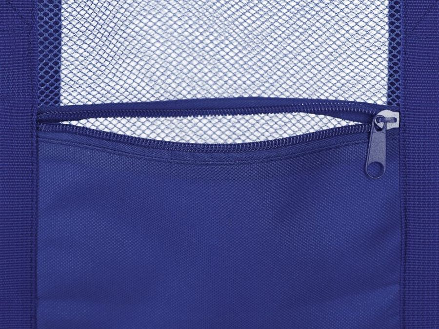 Вместительная пляжная сумка с отделением -холодильником внизу. Удобно брать холодные напитки на пляж. Сетчатая ткань способствует просыханию пляжных вещей. Комфортные длинные ручки фиксируются вместе застежкой липучкой. Все отделения и наружный карман для мелочей застегиваются на молнию. Благодаря большой вместительности сумку можно использовать для шоппинга.