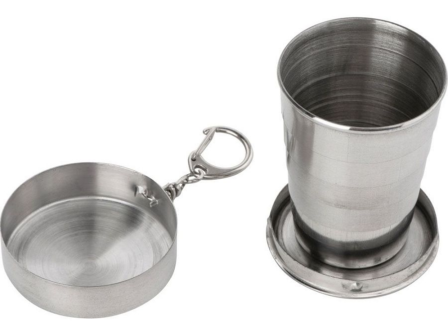Удобство использования: В комплект входят два складных стаканчика по 60 мл, также выполненных из нержавеющей стали. Они надежно крепятся к фляге с помощью ремешков на кнопках, что позволяет всегда иметь их под рукой.