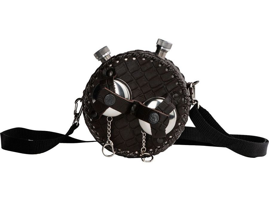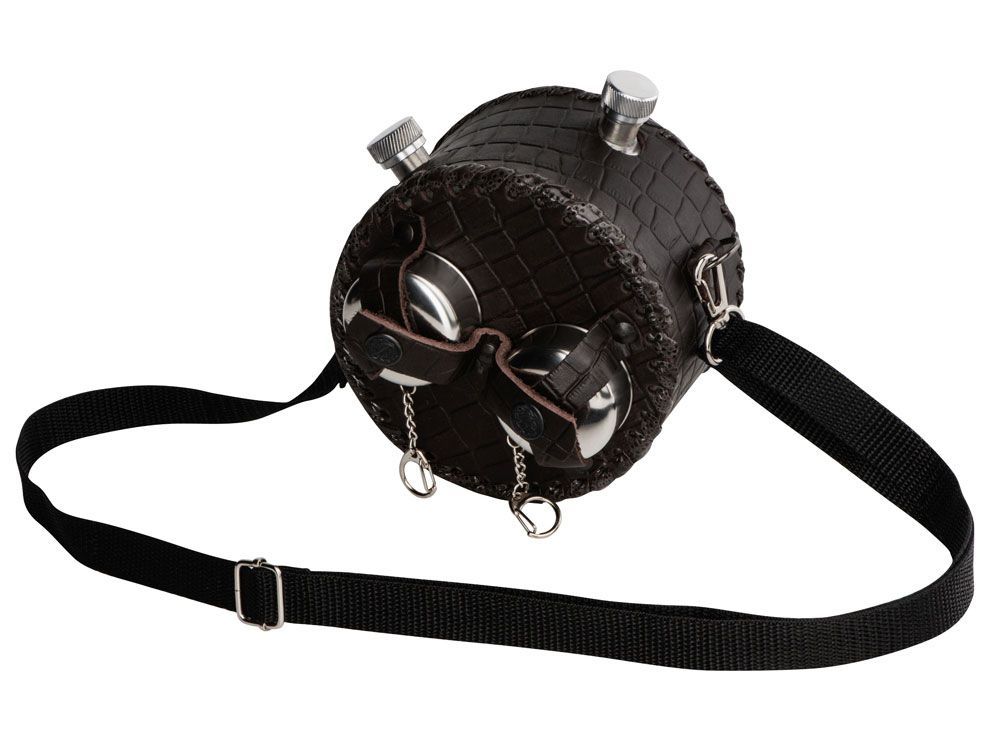 Двойная фляга из нержавеющей стали в оплетке из натуральной кожи.