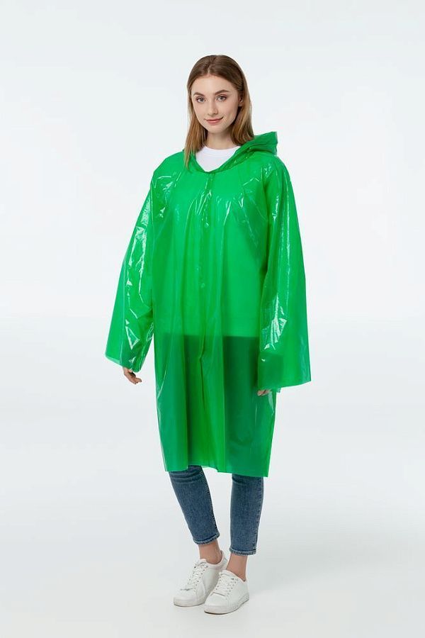 Дождевик-плащ с капюшоном и длинными рукавами из полиэтилена высокого давления (ПВД).