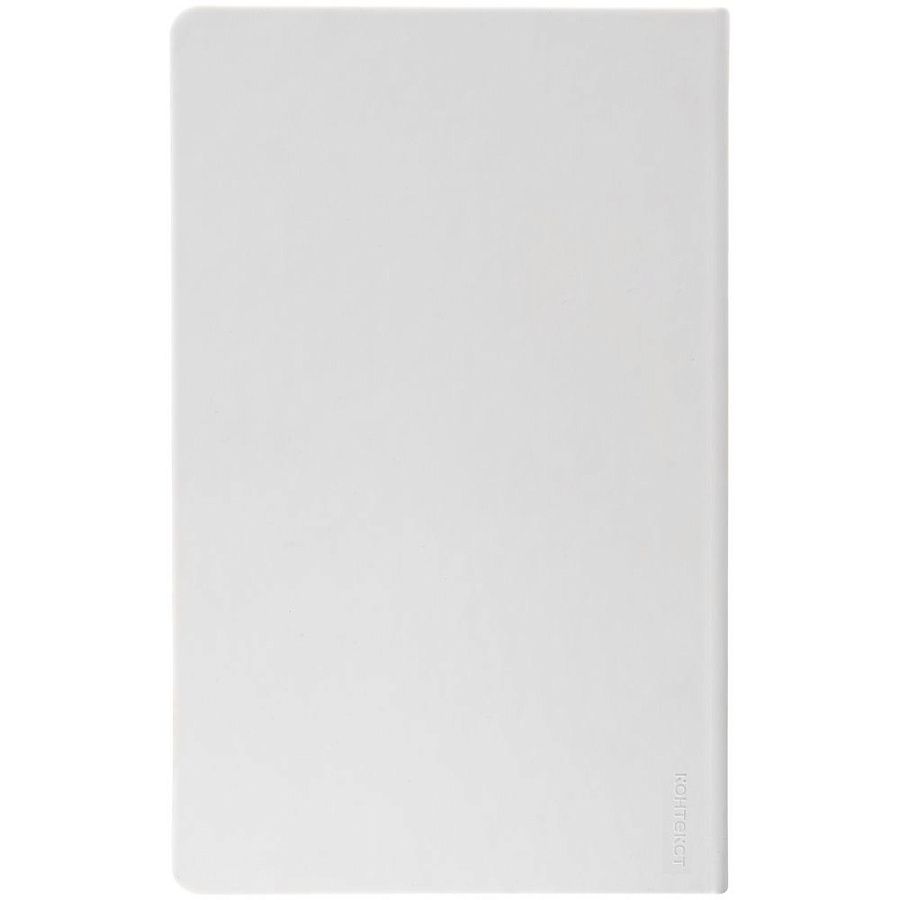 Ежедневник в твердой обложке, выполненной из материала Soft Touch, белый ВВ, дополнен атласным ляссе и магнитом, удерживающим ручку.