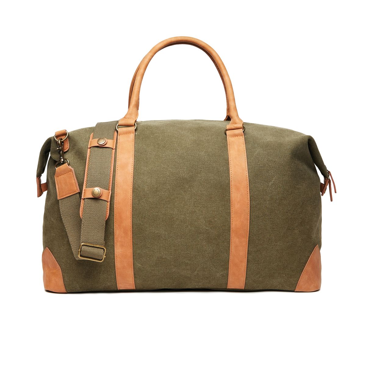 Дорожная сумка из коллекции Bosler изготовлена из канваса: на 40% он состоит из переработанного полиэстера, а на 60% — из переработанного хлопка. Ткань получается плотная и прочная, но при этом легко складывается для удобного хранения. Ручки и декоративные элементы изготовлены из искусственной кожи, фурнитура — из латуни. Если вы любите классику и ретростиль, эта сумка непременно придется вам по душе.