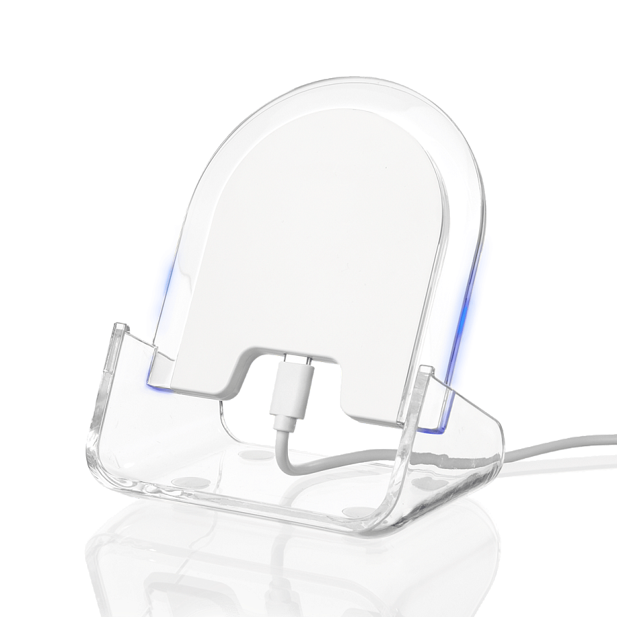 Конструкция позволяет заряжать смартфон в вертикальном и горизонтальном положении, а также просто использовать как подставку.