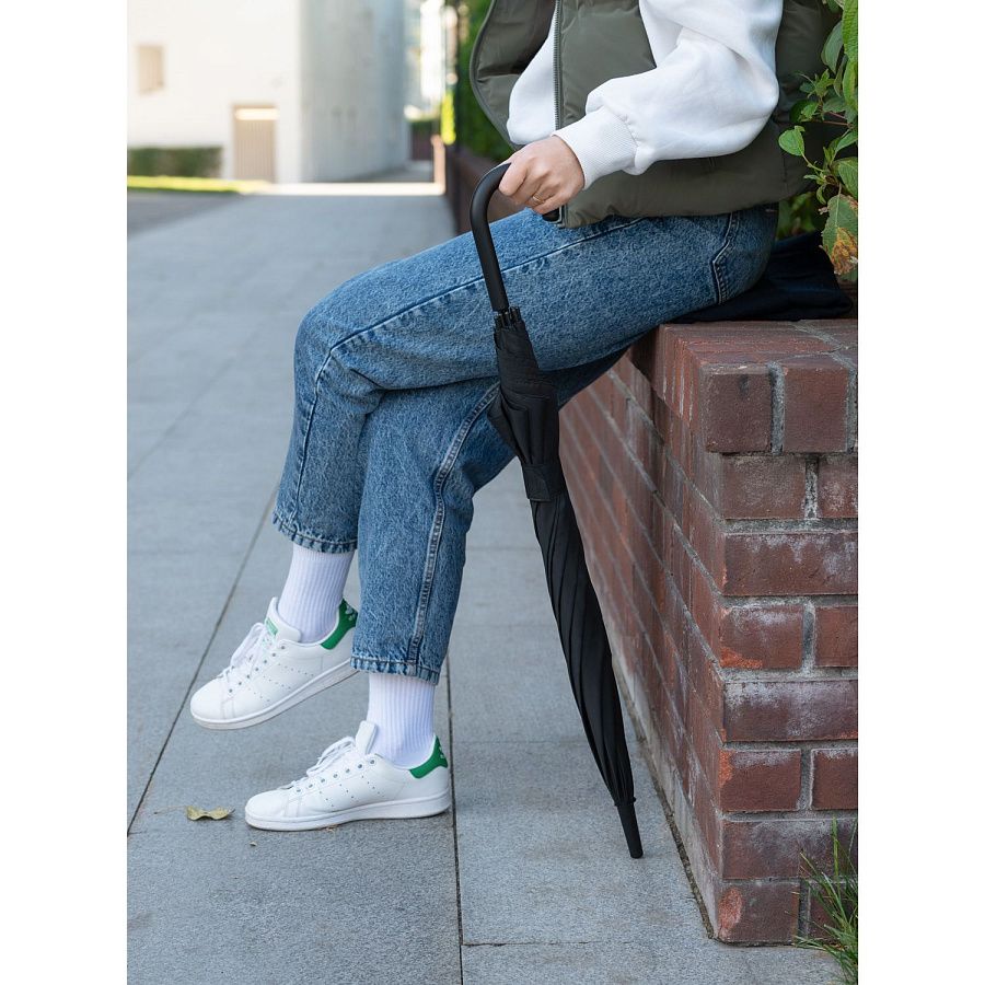 Зонт оснащен системой антишторм, что позволяет спицам не ломаться даже при сильных порах ветра.