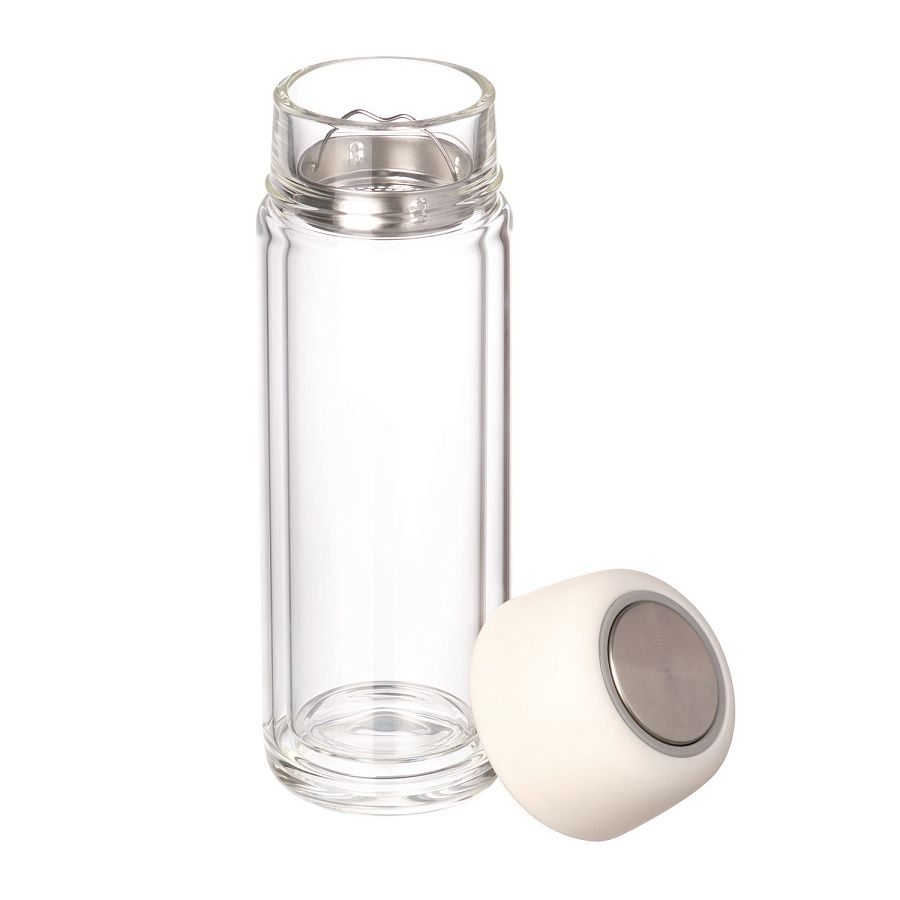Бутылка сделана из боросиликатного стекла, которое отличается устойчивостью к высоким температурам, перепадам температур и коррозии. Стекло не вступает ни в какие химические реакции с напитками, не боится ни кислот, ни солей, ни накипи. Благодаря стенкам из двойного стекла, бутылка сохраняет тепло до 2 часов. Кроме того, ее спокойно можно держать руками, даже если в ней кипяток.