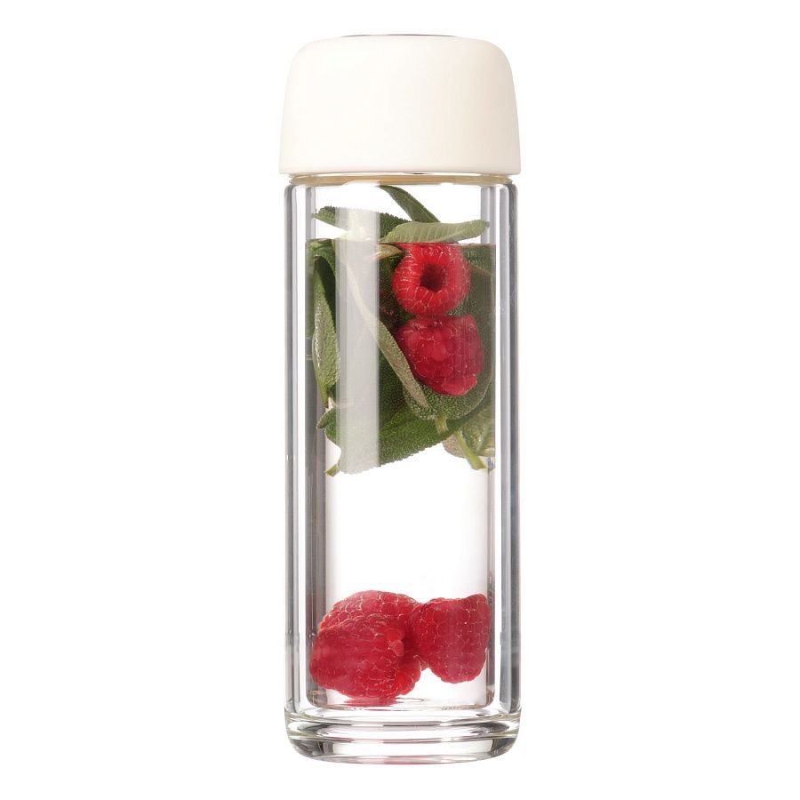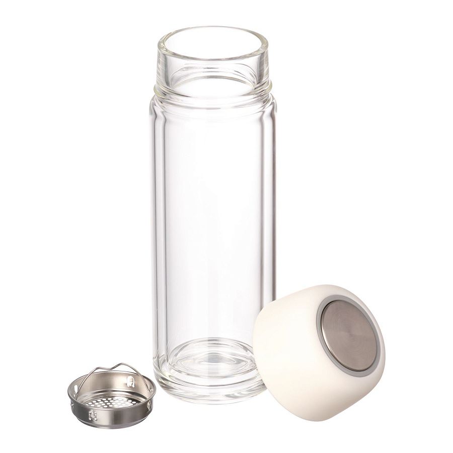 Стеклянная бутылка с двойными стенками позволит носить свежезаваренный чай с собой. Ситечко позволит заварить чай прямо в бутылке.