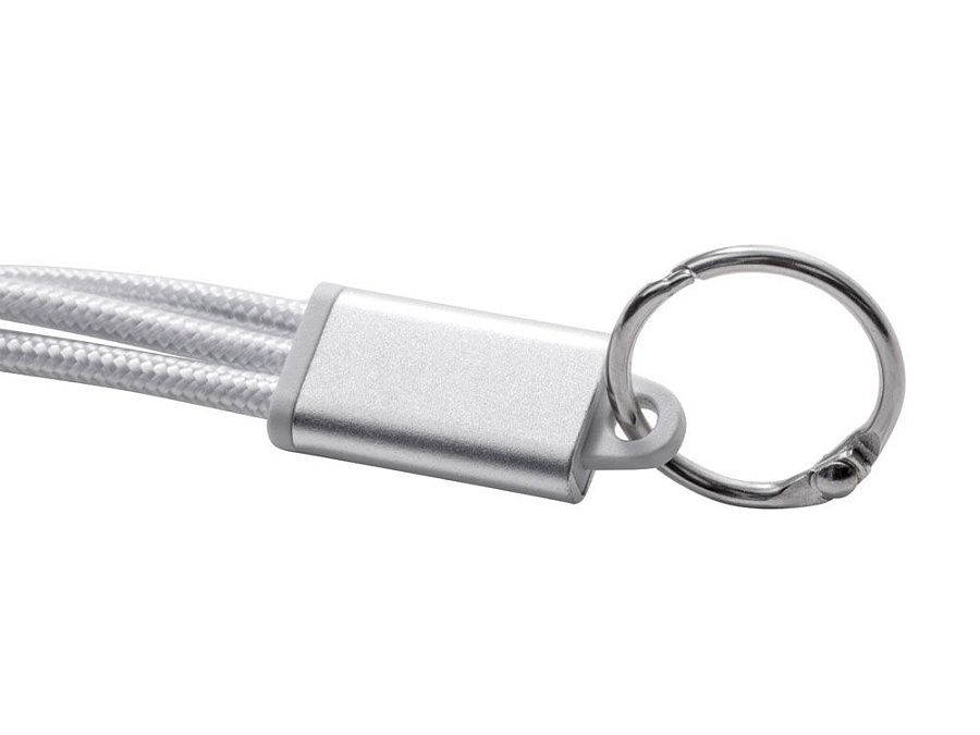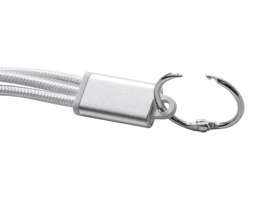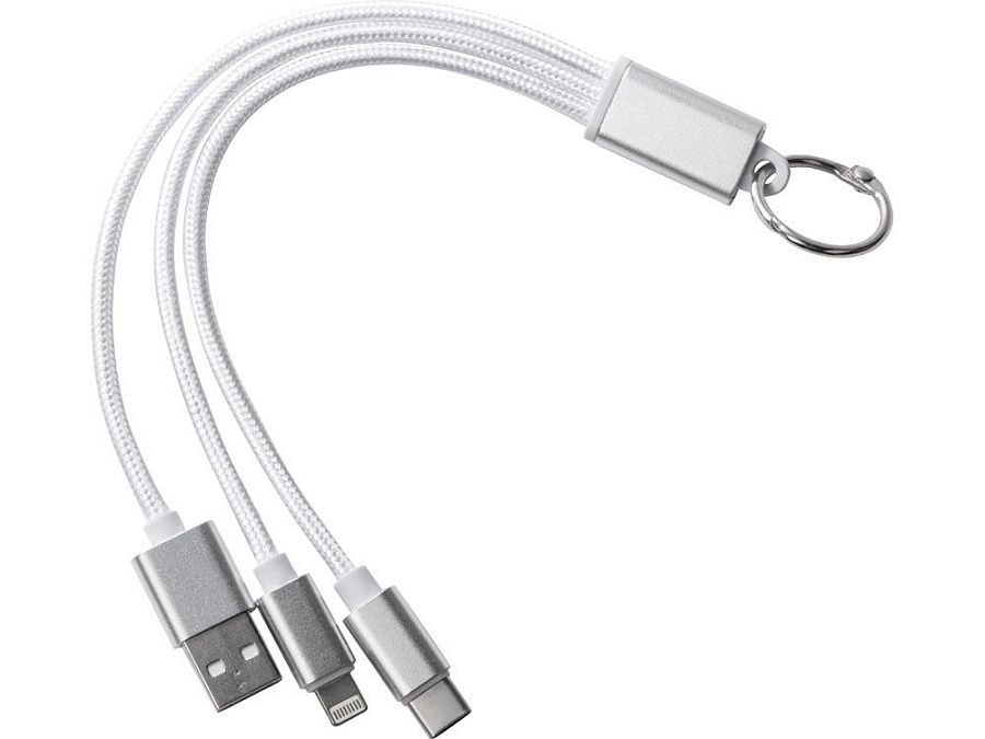 Кабель для зарядки «Tres» 3-в-1 с брелоком, коннекторами 1 type с, 1 USB type A и двойным совместимым коннектором «2-в-1» для устройств с ОС Apple® iOS и Android. В комплект входит брелок. Для зарядки устройств Apple подключайте кабель стороной без контактов; для зарядки устройств с ОС Android подключайте кабель стороной с контактами. Алюминий.