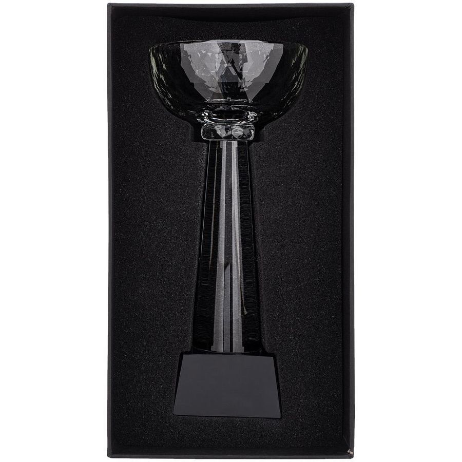 Массивное черное основание и легкое прозрачное навершие создают сбалансированную и устойчивую композицию. При попадании прямого света рельефный рисунок на чаше запускает вокруг легкие блики.