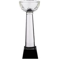 Массивное черное основание и легкое прозрачное навершие создают сбалансированную и устойчивую композицию. При попадании прямого света рельефный рисунок на чаше запускает вокруг легкие блики.