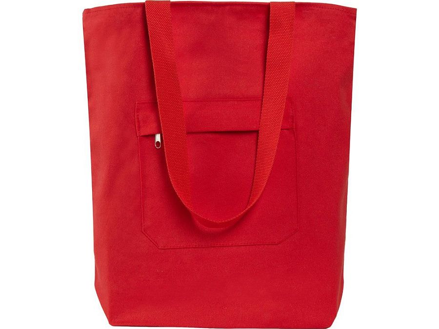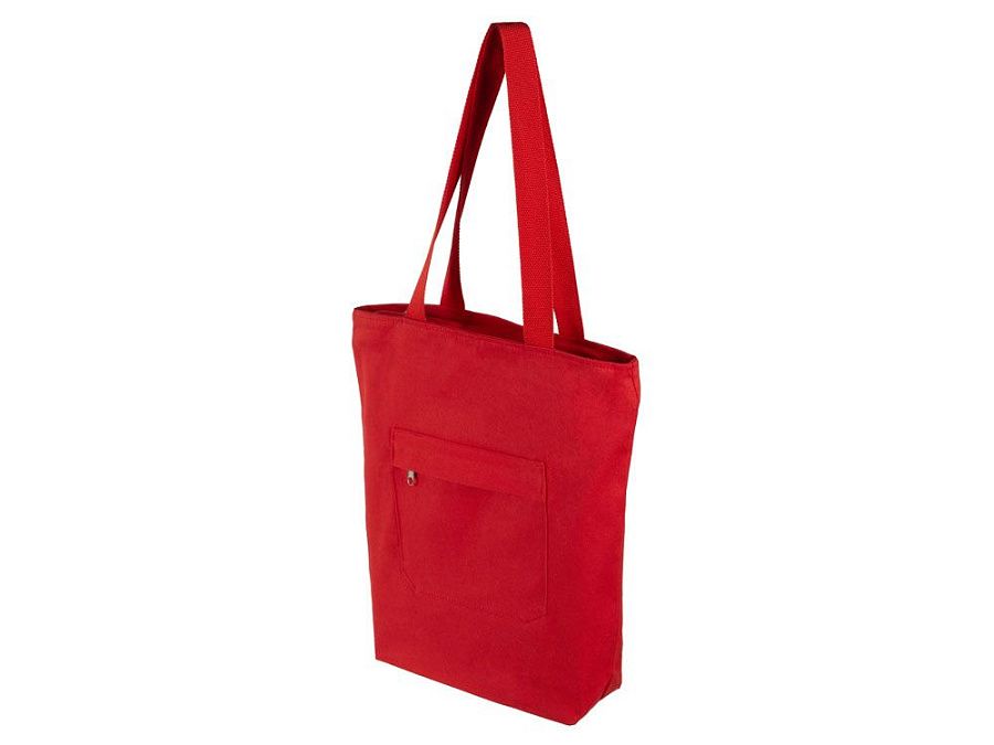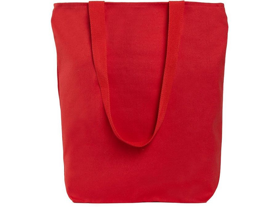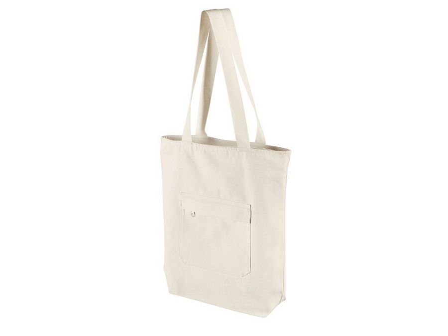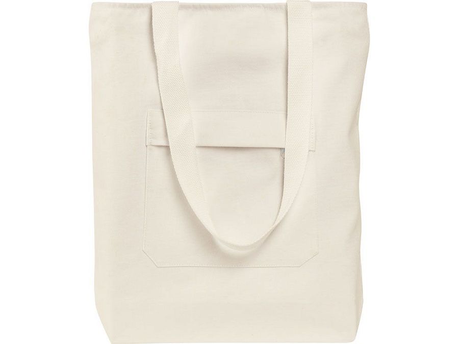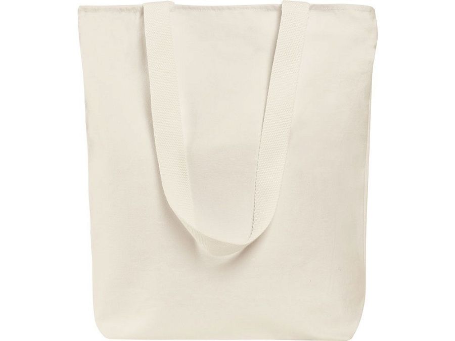 Преимущество этой сумки в наличии застежки молнии на основном отделении - ее содержимое остается закрытым. Донная складка увеличивает вместимость. Снаружи расположен карман на молнии. Парусиновые ручки в тон сумки.