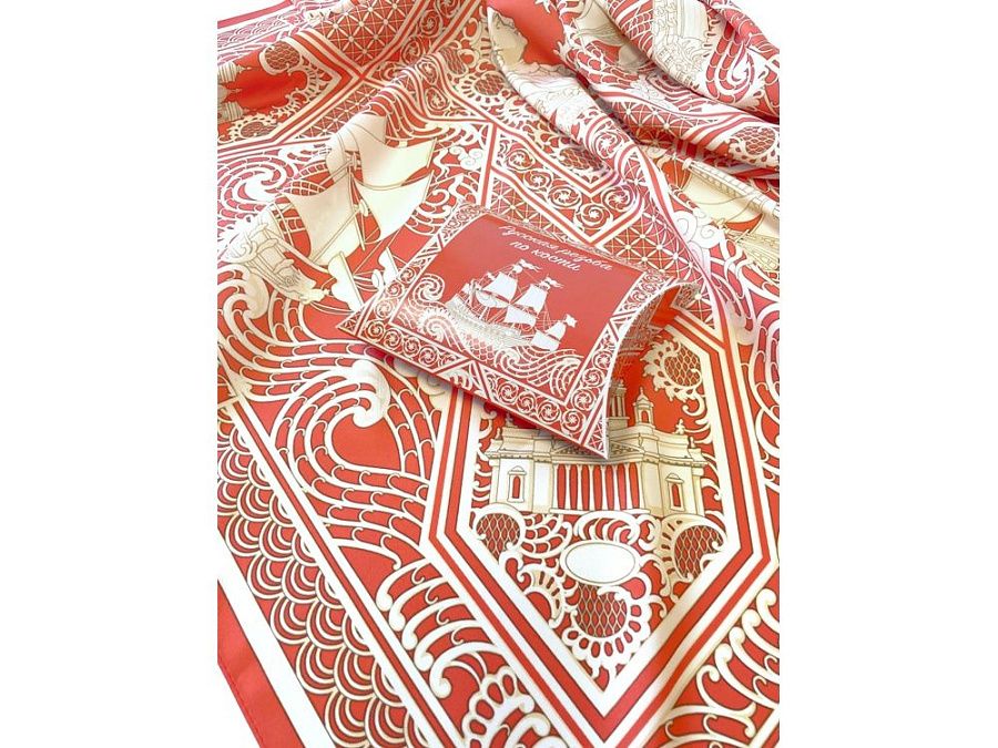 Тематика платка - Петровский Флот. В центре - декоративная резная пластина в пышном обрамлении с профилем великого русского самодержца Петра I.