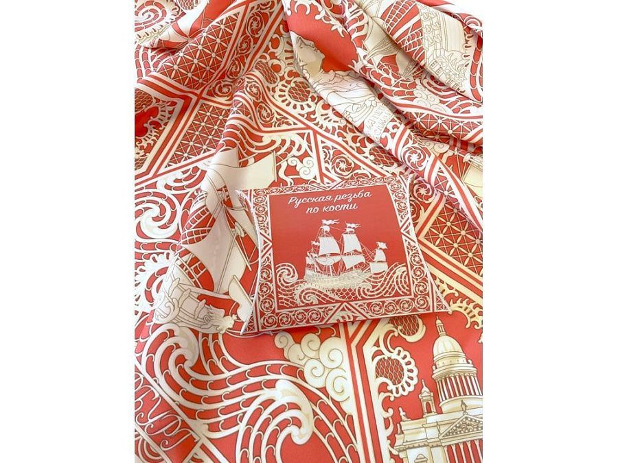 Платок «Русская резьба по кости» совмещает в себе традиции виртуозных мастеров и отвечает запросам нашего времени. В изысканный и модный аксессуар вплетена история, а сам по себе он является модным акцентом в образе современной девушки.