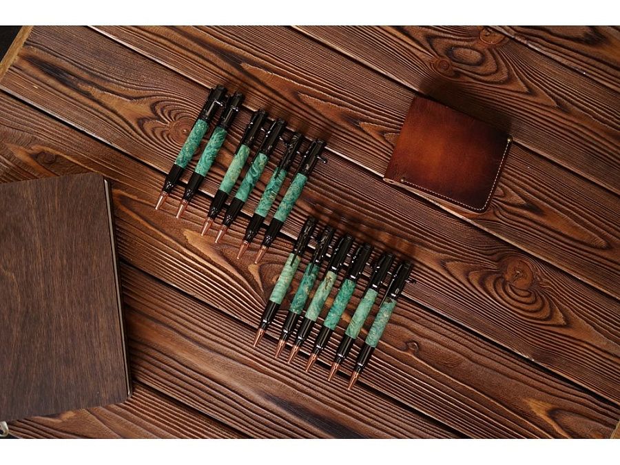 Кап — это нарост на дереве, наполненный большим количеством почек (маленьких веток), достаточно редкий и сложный в обработке материал. Благодаря процессу "стабилизации" (сквозной пропитке и окраске дерева) можно добиться необычайно красивого и насыщенного рисунка, а также сделать дерево очень прочным, оно не будет бояться воды и прослужит долгие годы.