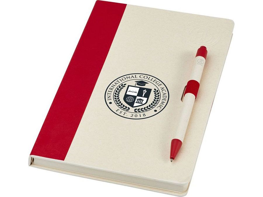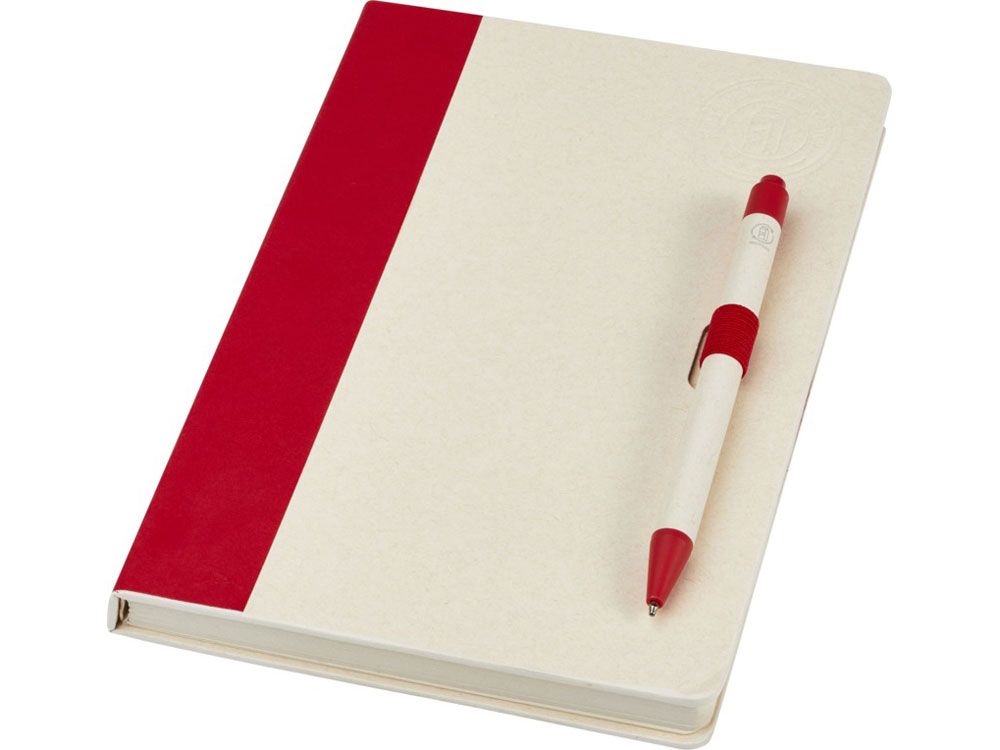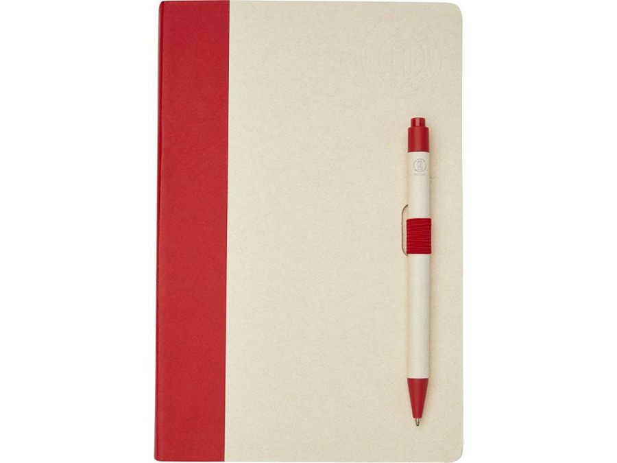 Блокнот A5 Dairy Dream с шариковой ручкой. Блокнот имеет 80 линованных листов (80 г/м²) из переработанных коробок из-под молока (до 70%), цветную спираль для бумаги и петлю для ручки. В петле находится шариковая ручка с кнопочным механизмом, цвет которой соответствует цвету блокнота. Корпус ручки также изготовлен из переработанных коробок из-под молока, а кнопка, зажим и наконечник изготовлены из цветного PLA-пластика. Внутри ручки имеется черный стержень. Картонные коробки из-под молока собираются, сортируются, перерабатываются и превращаются в бумагу, таким образом действительно превращая мусор во что-то полезное.