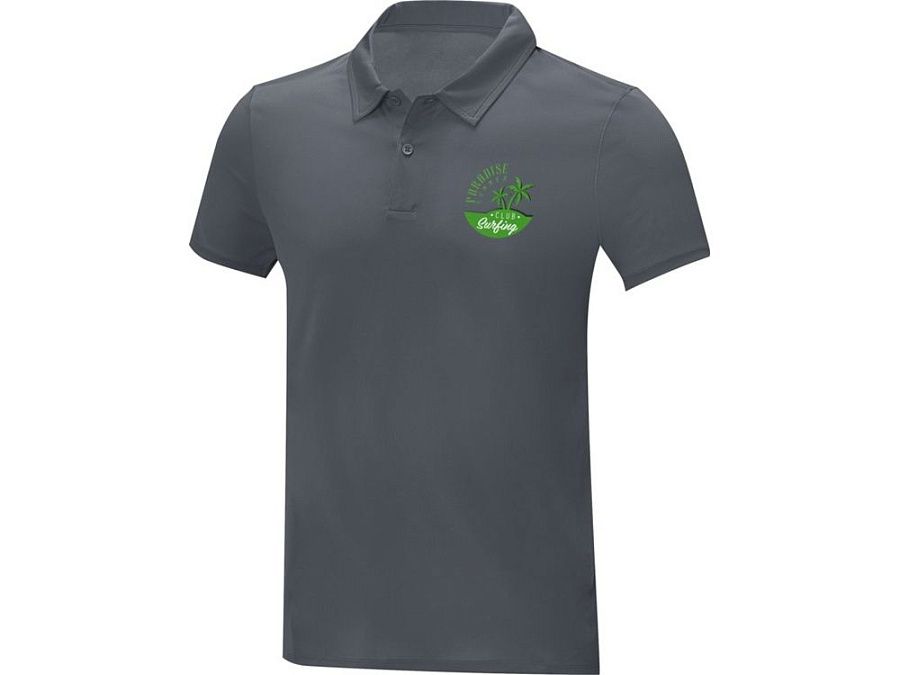 Мужская стильная футболка поло с короткими рукавами Deimos. Возможность нанесения на внутреннюю часть фирменной символики. Планка с двумя пуговицами. Для большего комфорта основной ярлык можно оторвать или отрезать. Обработка воротника обтачкой из основной ткани. Передний боковой шов со строчкой «флатлок». Сетчатая ткань с покрытием cool fit 100% Полиэстер, 105 g/m2.