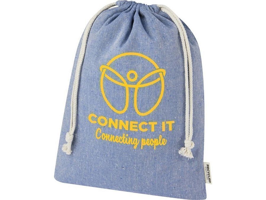 Подарочная сумка из хлопка, переработанного по стандарту GRS, с хлопковым шнурком для затягивания. Идеально подходит для подарков или хранения предметов. Размер: 30 x 42 см.