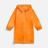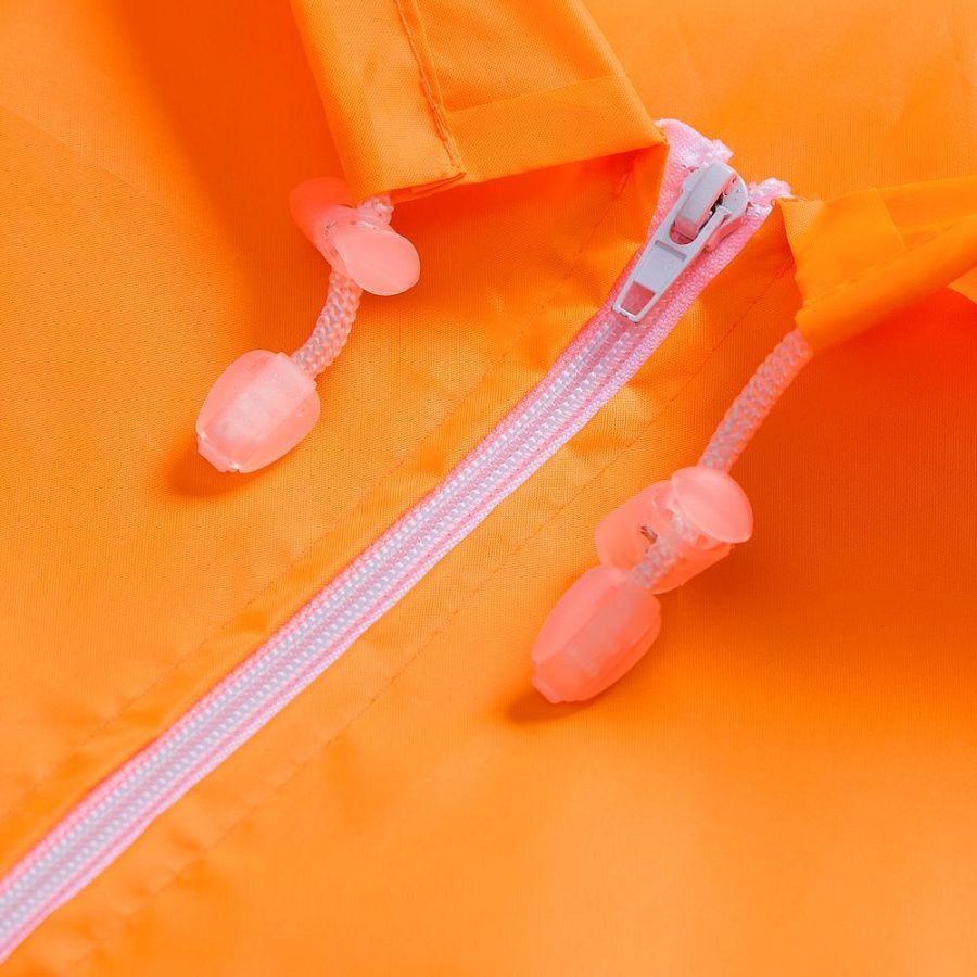 Детский дождевик на молнии из таффеты с влагозащитным покрытием. Складывается в мешочек — удобно брать с собой.