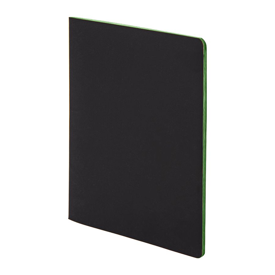 Цвет обложки черныйЦвет обреза близкий к PANTONE 341 Блок прошит, на корешке прошивка в цвет обрезаБлок с элементами планирования, в клеткуРазмер 140*210 мм, переплет мягкийОбложка PU Silk TouchСкругленные углыБумага кремовая, плотность 70г м2Форзац нахзац кремовые64 страницы