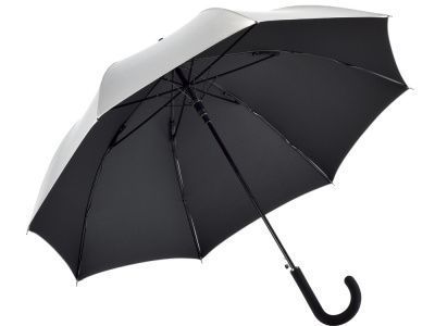 Двухцветный купол этого зонта-трости делает его ярким аксессуаром. Плавно открывается нажатием кнопки на ручке. Каркас из особо прочной гальванизированной стали.