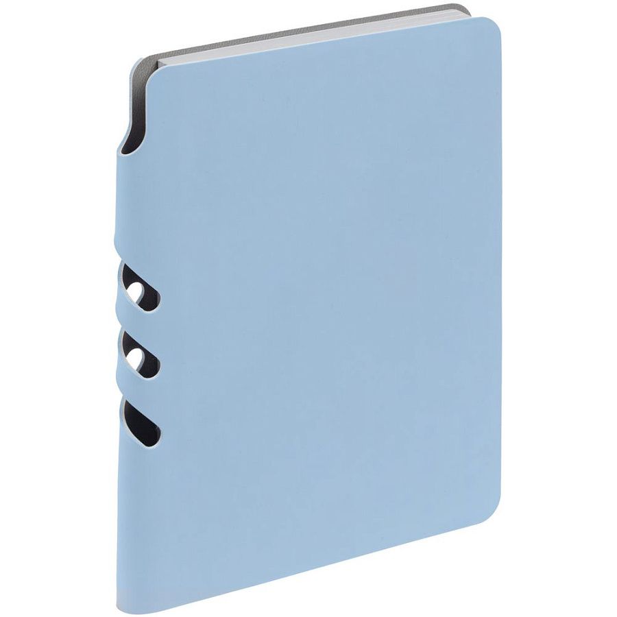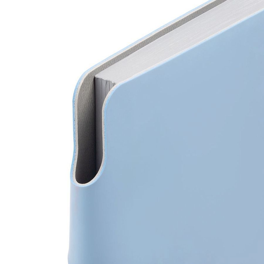 Ежедневник с гибкой обложкой выполнен из материала Soft Touch, голубой JJ и серого Latte (внутренняя часть обложки).