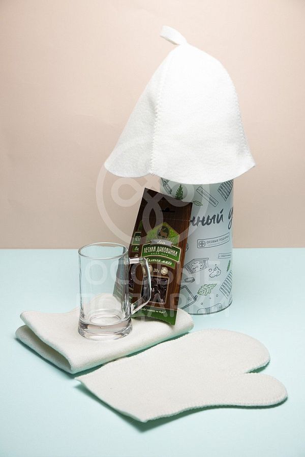 1.Набор для бани (многоразовый коврик, рукавица, шапка для парилки)2.Кружка стеклянная, 300 мл