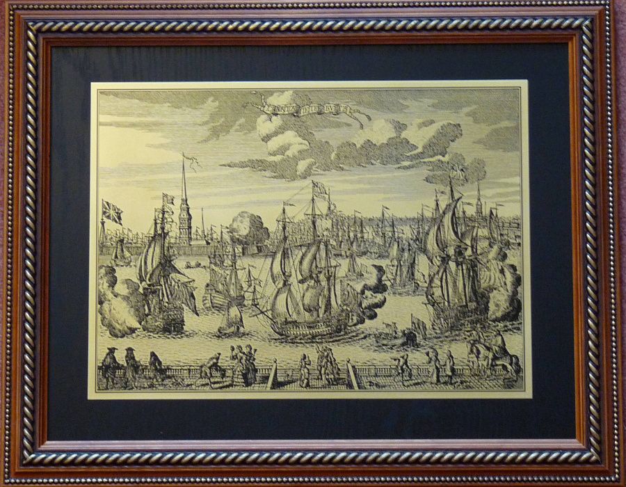 Гравюра "Вид Адмиралтейства и ИС в 1720 году" в vip раме, артикул 4050138