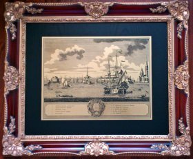 Гравюра "Гавань Брюгге" в раме с лепниной