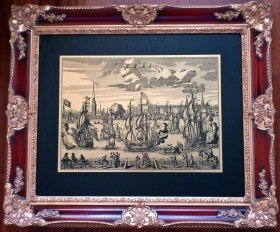 Гравюра "Гавань Брюгге" в раме с лепниной