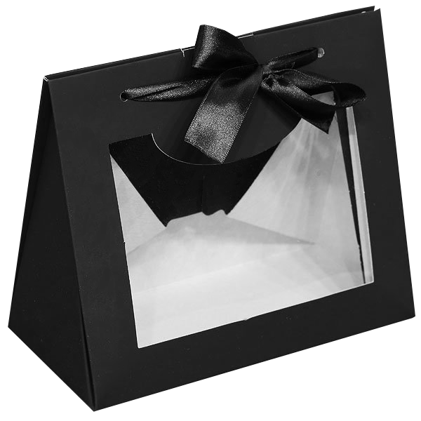 21*18,5*10,5 (см.) Коробка из черного "бархатного" дизайнерского картона с прозрачным окошком и атласной лентой.