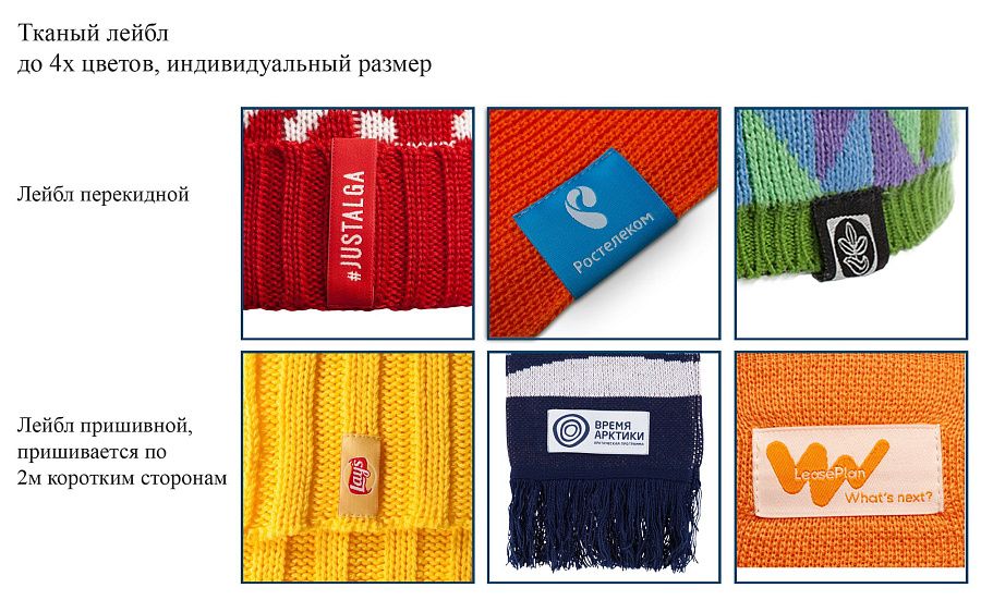 – вывязанный рельефный логотип (для всех переплетений, кроме «Ластика») – макет приложить;