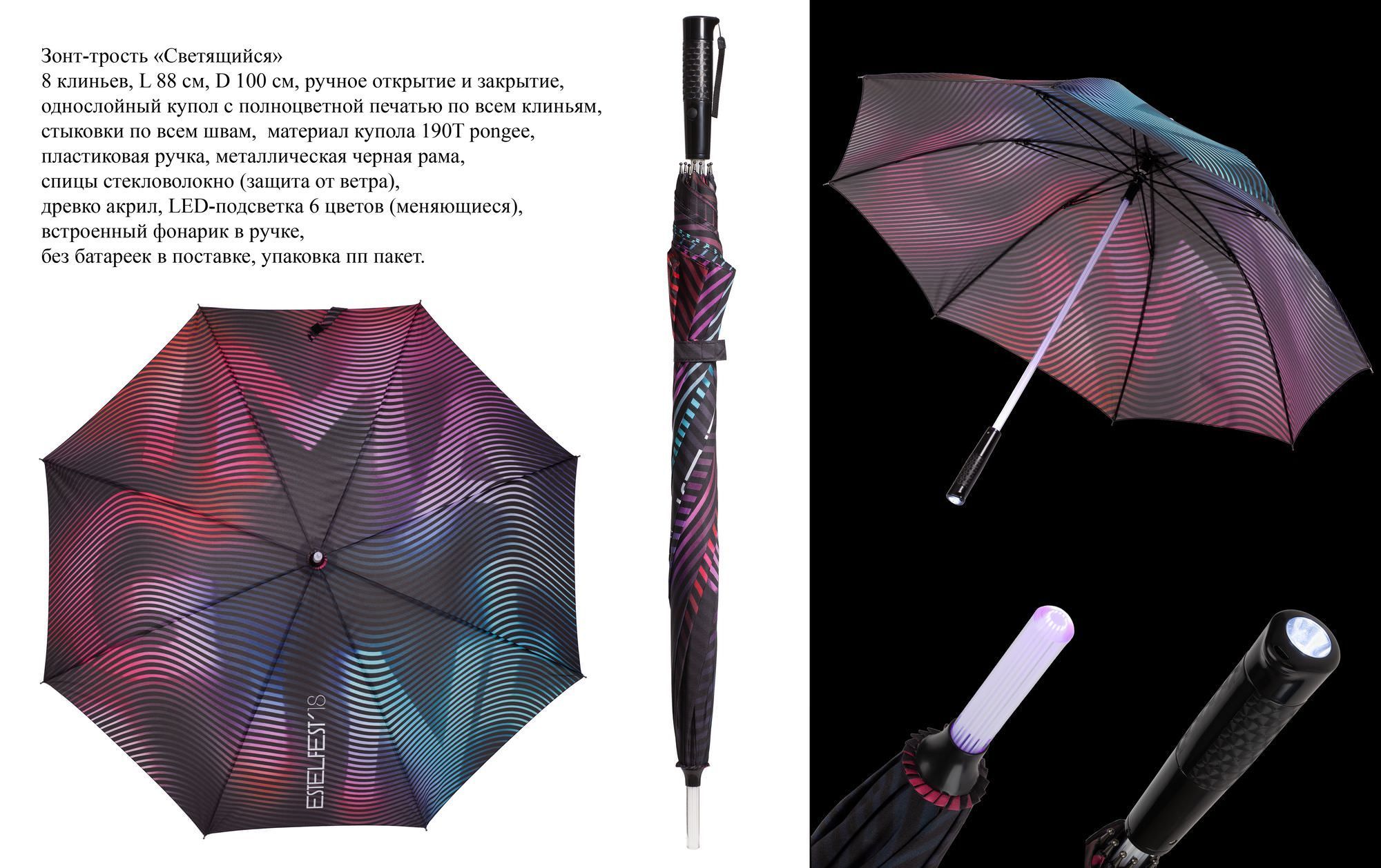 Дополнительные возможности – чехол с печатью. Зонт-трость, 8 клиньев, L88 см, D100 см.