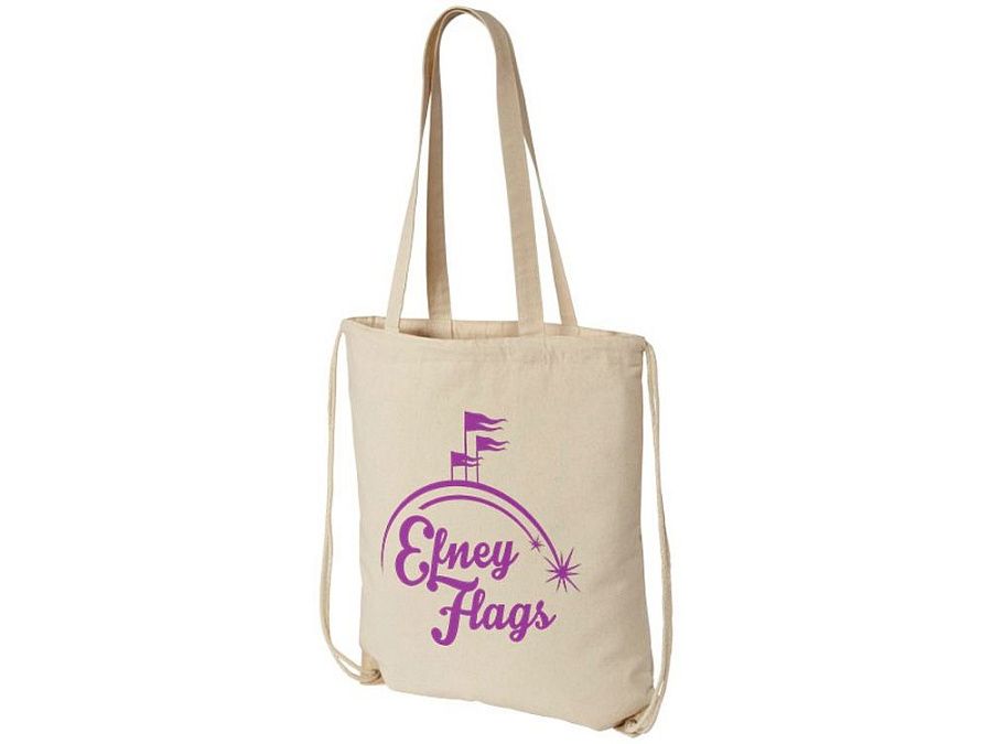 Многофункциональный хлопковый мешок с лямками и длинными ручками, который можно носить в качестве сумки для покупок или рюкзака. Большой основное отделение закрывается затяжкой- шнурком.