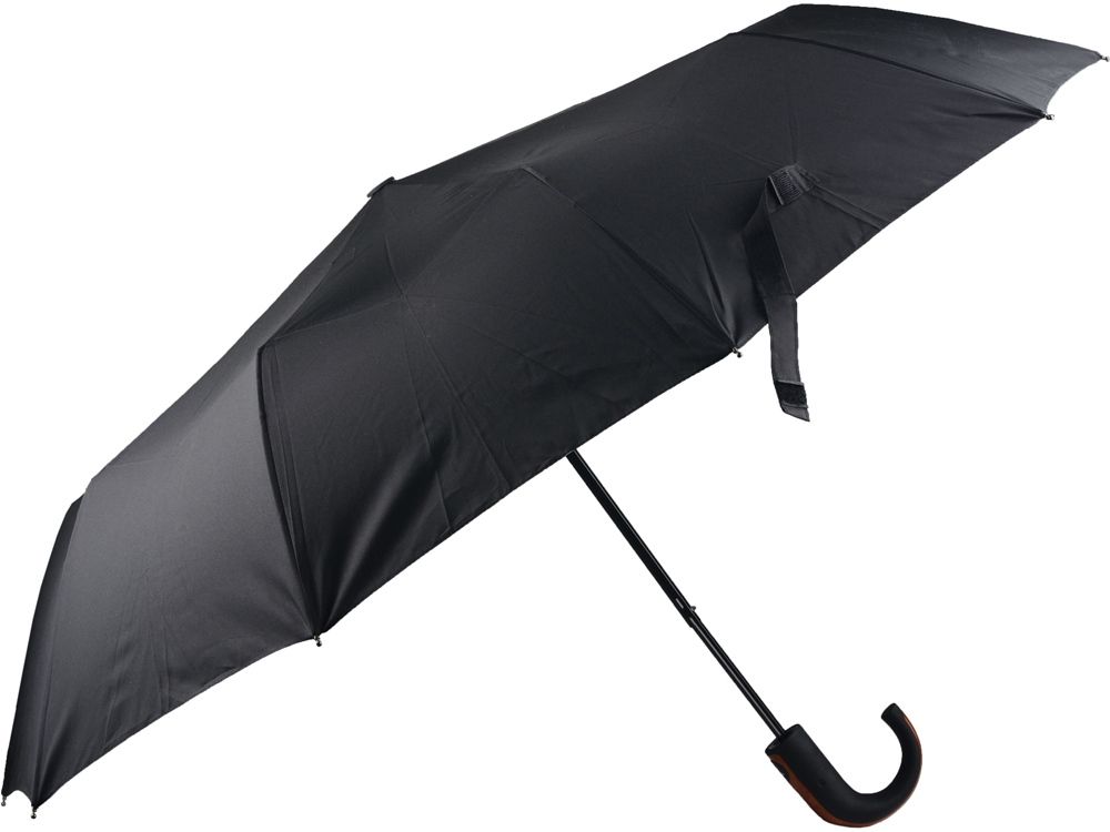 Отличный складной зонт для мужчин оснащен полуавтоматическим механизмом. Удобная рукоятка не скользит в руке, позволяя надежно удерживать зонт. Ручка зонта задекорирована под дерево. На купол можно нанести любое изображение.