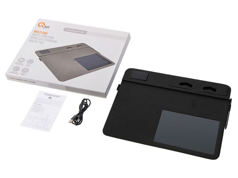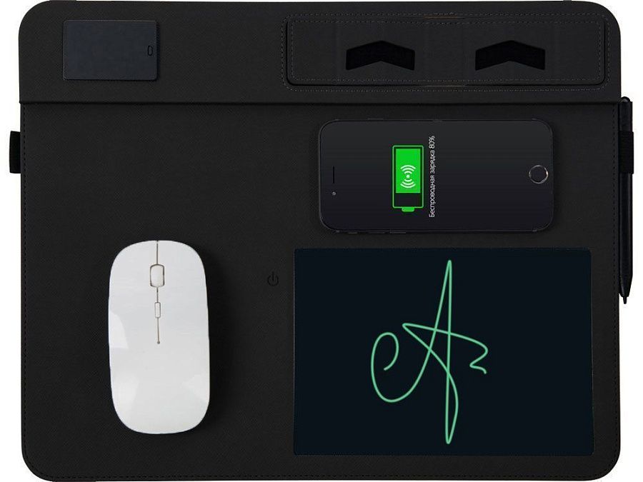 Настольный органайзер сочетает в себе сразу несколько устройств: беспроводное зарядное устройство, планшет со стилусом для заметок, подставку для смартфона и коврик для мышки. А еще нанесенное на Multi Pad лого подсвечивается!