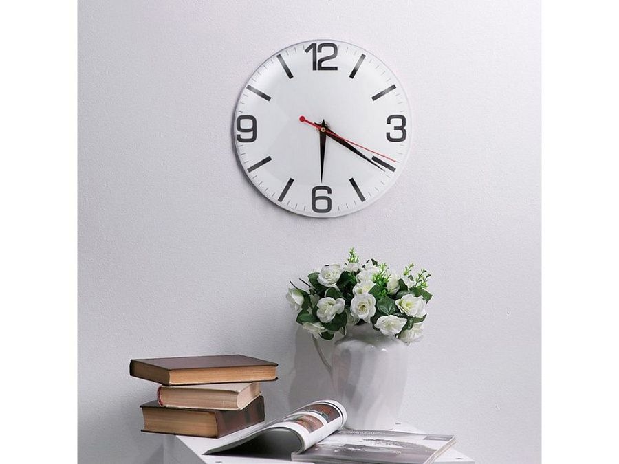 Настенные часы на пластиковом основании могут поставляться как с установленным циферблатом, так и персонализированным под заказ клиента.