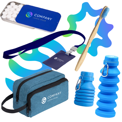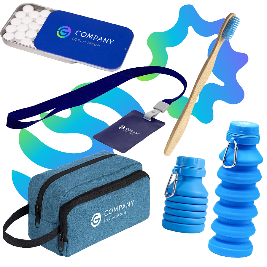 —Подарочный набор «Смайл»: складная бутылка, зубная щётка, пропуск с лентой, мятное драже, несессер, артикул 14949